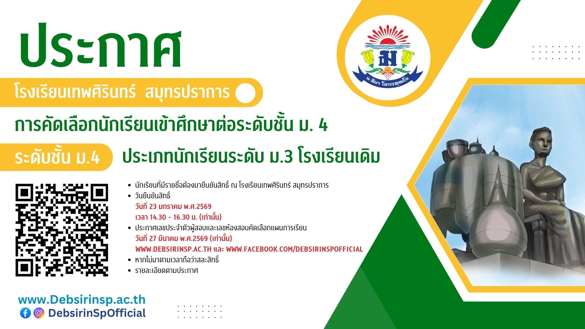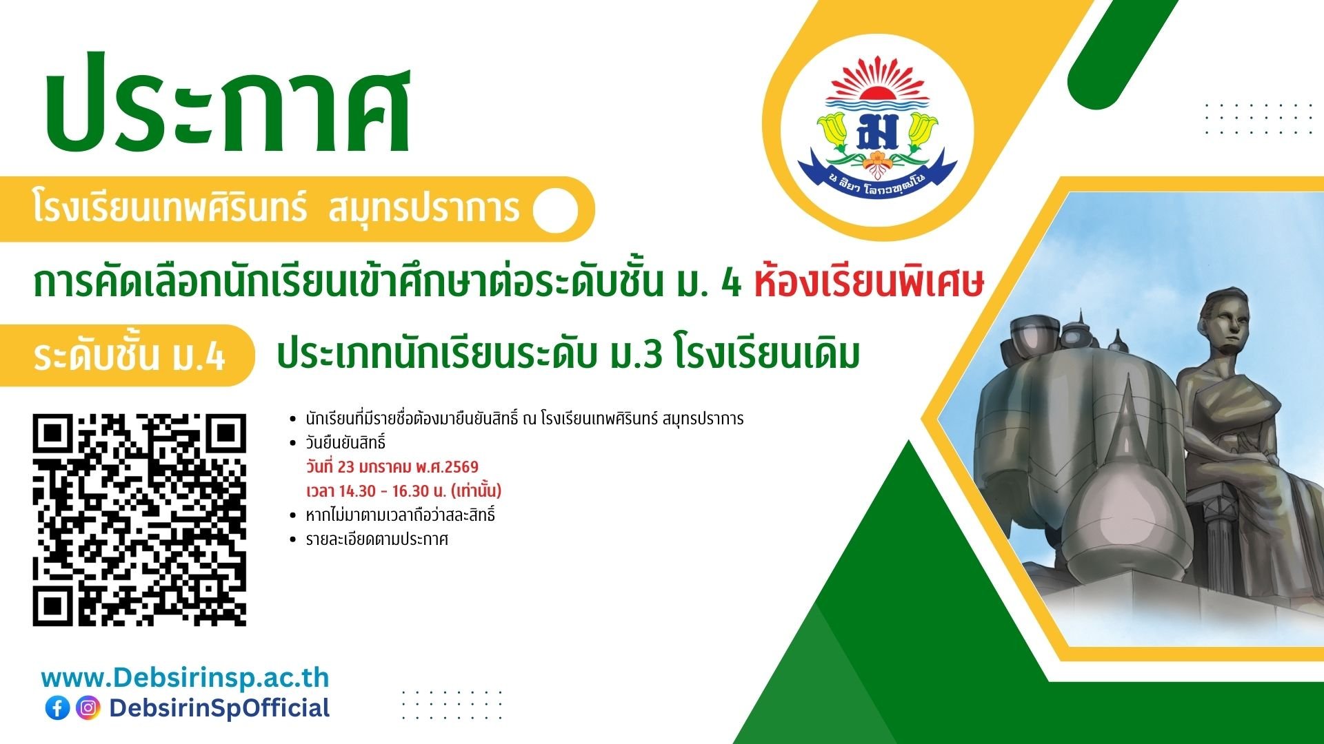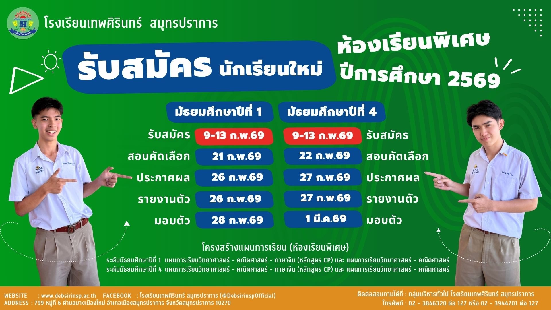 โรงเรียนเทพศิรินทร์ สมุทรปราการ เป็นโรงเรียนมัธยมศึกษาขนาดใหญ่พิเศษ สังกัด กระทรวงศึกษาธิการ เปิดสอนระดับชั้น ม.1 - ม.6 โรงเรียนของเรามุ่งพัฒนาผู้เรียนให้ก้าวทันโลกแห่งอนาคต ทั้งด้านวิชาการ ทักษะชีวิต และความเป็นผู้นำพร้อมเสริมสร้างศักยภาพผู้เรียนผ่าน 10 แผนการเรียนที่หลากหลายครอบคลุมทั้งสายวิทย์ ศิลป์ เทคโนโลยี และธุรกิจ